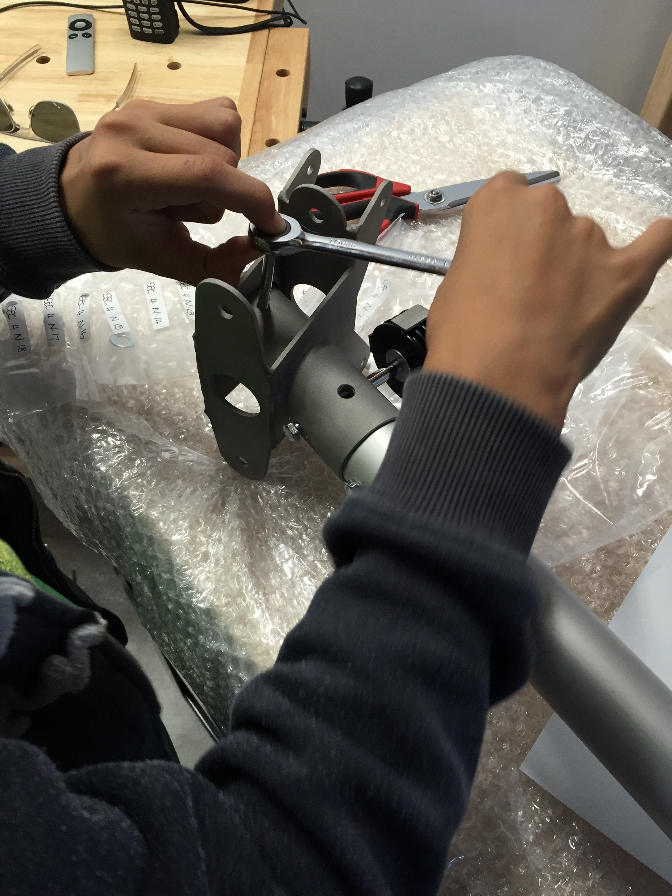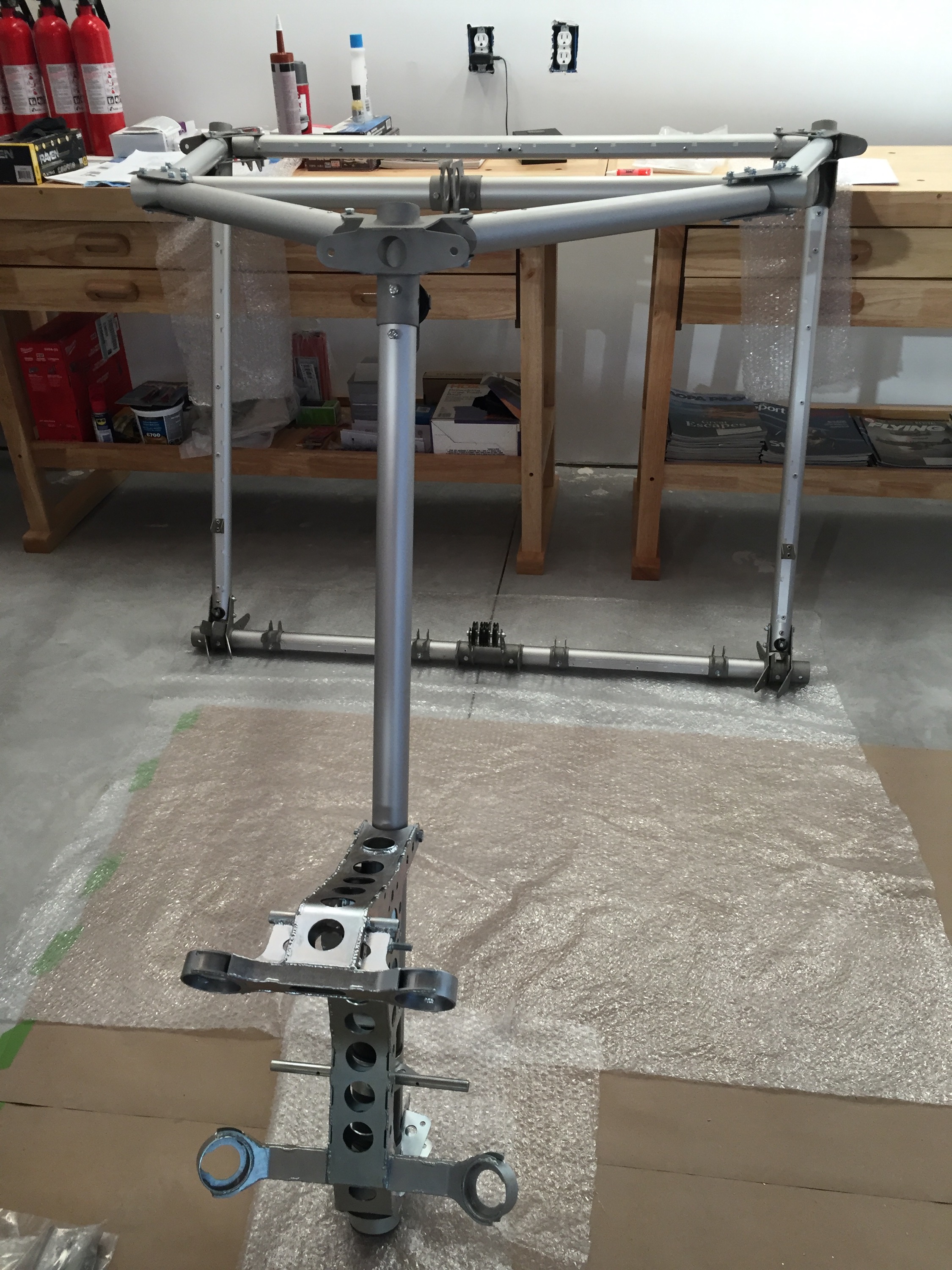 Section 4 main engine mounting and front cabin strut assembly. Parts inventory and layout. Assembly per instructions. Final nut tighten and torque deal application todo. Will update item when complete.